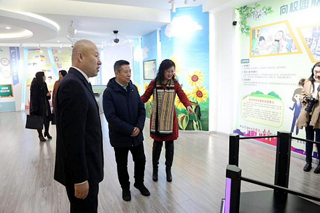 李英杰与李雪峰共同为“beats365唯一官方网站教学实践基地”和“beats365唯一官方网站未成年人心理援助矫护中心”揭牌,并和参会人员共同参观富裕县检察院未成年人检察工作区。