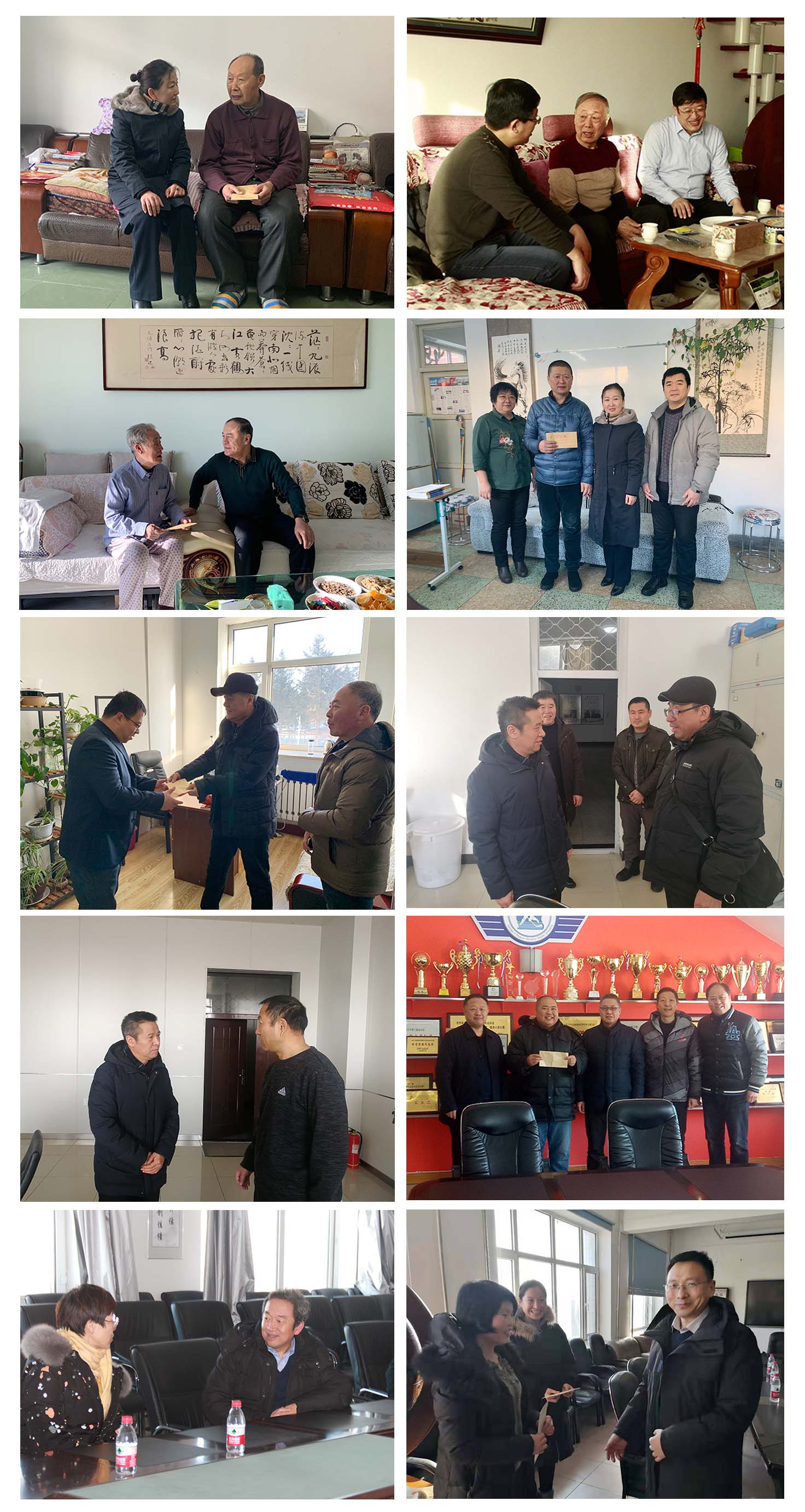 陈桂芝、齐宏伟、张文治、王刚分别来到敖成章、刘祯、韩本友、薛秉昌等离退休原任校领导家中走访慰问。每到一处,校领导都关切地询问老干部们的身体状况和生活状况,并送上全校师生的新春祝福,祝愿老领导们在新的一年里身体健康,生活愉快,家庭幸福。校领导还向老干部们热情介绍学校一年来的发展变化,对各位老同志多年来对学校发展建设所做出的贡献表示感谢,希望各位老领导一如既往地支持学校的各项工作,积极为学校的发展建设发挥余热。