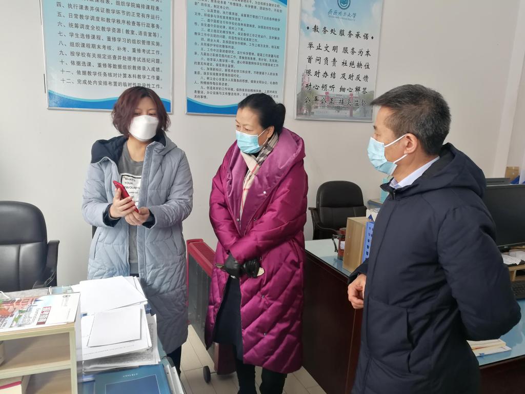 3月2日,beats365迎来线上教学试运行第一天。在这个特殊而有意义的日子里,校党委书记、校长陈桂芝,校党委常委、副校长李英杰深入教务处督察线上教学情况,与师生同上一门课。