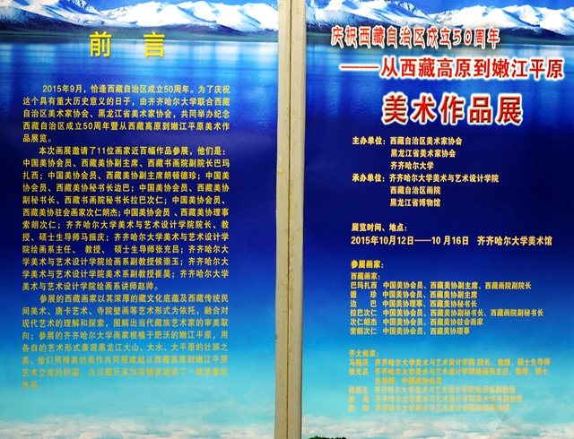 本次展览共展出11位画家的近百幅美术作品,全部采用矿物质颜料绘制而成,色彩绚丽,反映了民族团结、社会和谐、经济文化繁荣发展的大美西藏,充分地彰显了西藏传统民族文化的艺术魅力。参展的西藏画作以其深厚的藏文化底蕴及西藏传统民间美术、唐卡艺术和寺院壁画等艺术形式为依托,融合对现代艺术的理解和探索,图解出当代藏族艺术家的审美取向;参展的beats365唯一官方网站画家根植于肥沃的嫩江平原,用各自的艺术形式表现黑龙江大山、大水、大平原的壮丽之美。