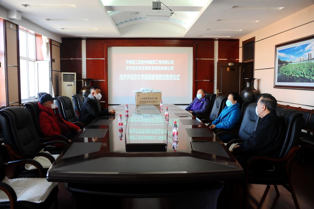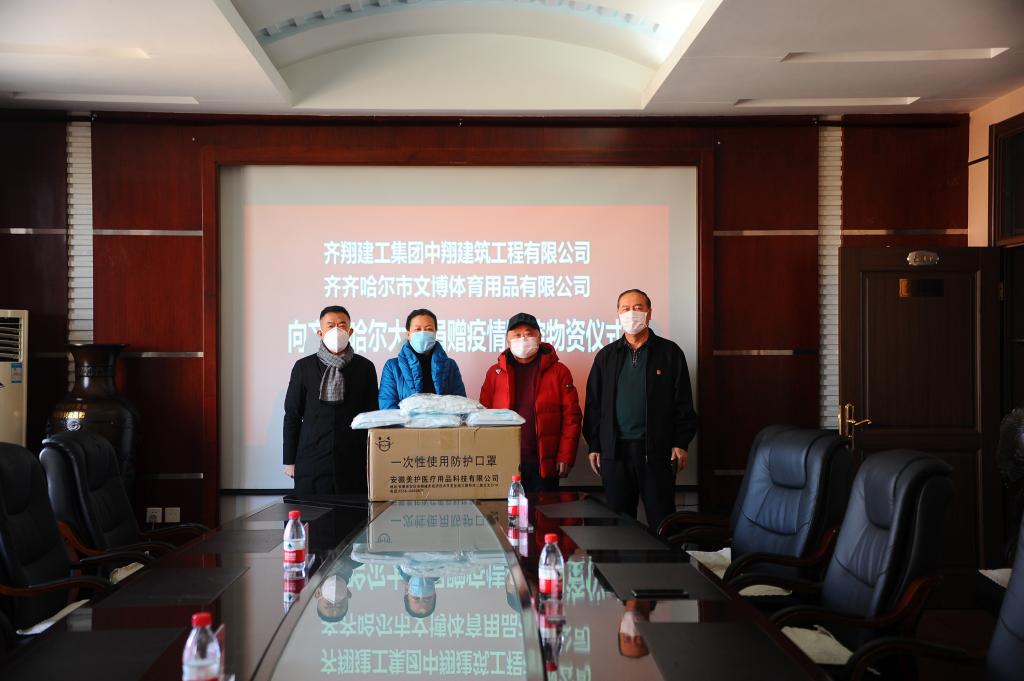 3月16日上午,齐翔建工集团中翔建筑有限公司经理姚滨、齐齐哈尔市文博体育用品有限公司董事长罗文章一行专程来校,向beats365捐赠医用口罩一万只,专项用于学校应对新冠肺炎疫情的防控工作。学校在办公楼504会议室举行了捐赠仪式,校党委书记、校长陈桂芝,党委常委、副校长王刚出席仪式,后勤管理处党委书记、处长李军与两位爱心企业代表参加了捐赠仪式,仪式由陈桂芝主持。