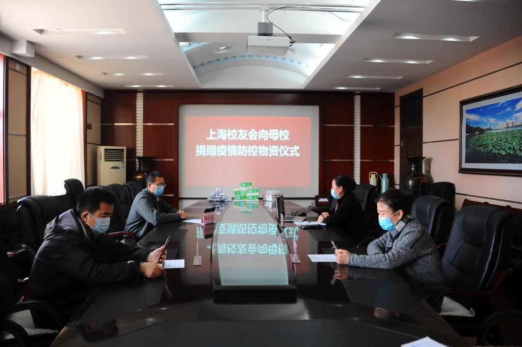 4月15日下午,学校在办公楼504会议室召开上海校友会向母校捐赠疫情防控物资仪式,校党委书记、校长陈桂芝,党委副书记齐宏伟,校工会主席陶佰睿出席仪式,学校办公室、校友会办公室相关负责人参加了仪式。上海校友会主要负责人李庆军、刘志彬、辛亚生、张志忠、兰军花、王海洋、朱怀富通过微信群视频会议的方式一同参加了捐赠仪式。