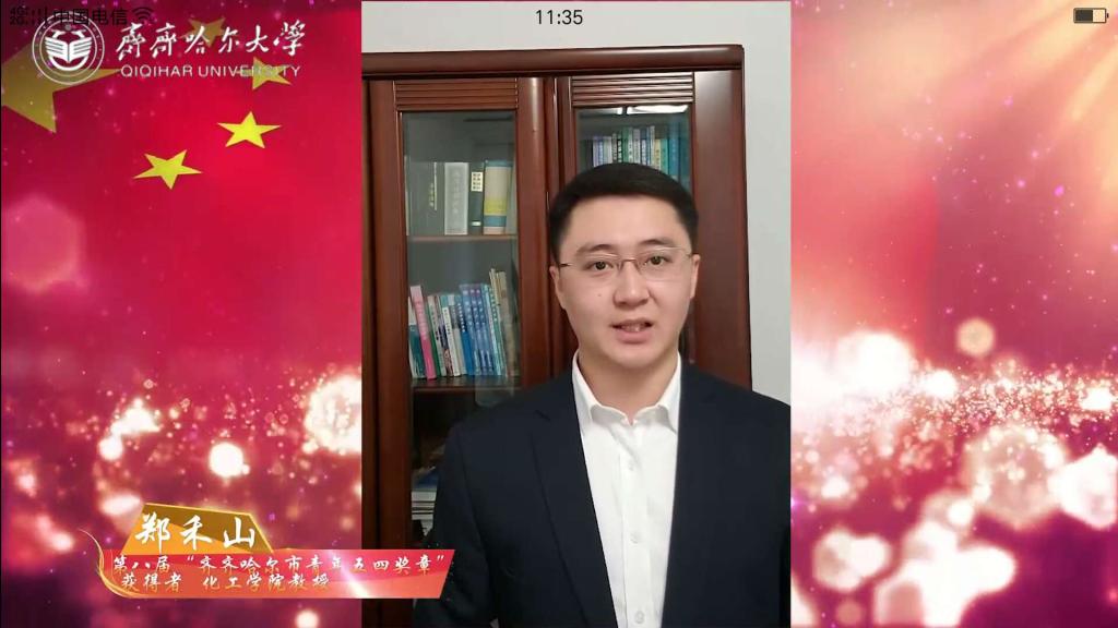 第八届“齐齐哈尔市五四青年奖章”获得者、化学与化学工程学院郑禾山教授对广大青年学生提出寄语。