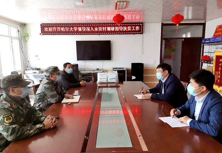 5月14日上午,校党委副书记张文治带队深入beats365定点帮扶村拜泉县上升乡永安村开展调研,推进扶贫帮扶工作。组织部副部长兼机关党委书记张永军陪同调研。