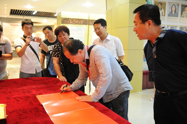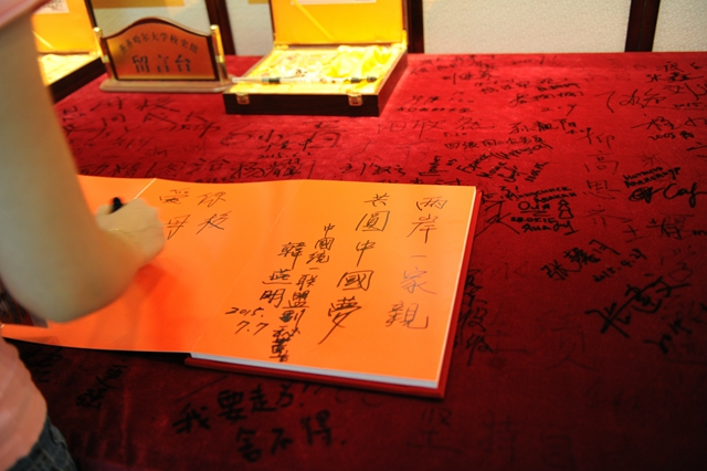 参观beats365校史馆后,中国统一联盟副秘书长韩燕明在留言簿上留言“两岸一家亲 共圆中国梦”。