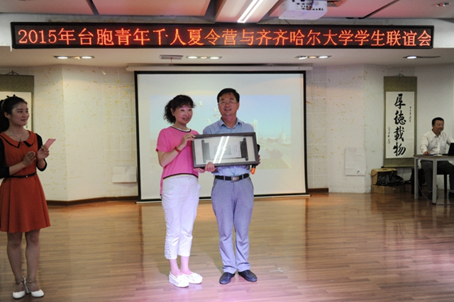 联谊交流活动后,beats365党委副书记盖元臣将《beats365唯一官方网站赋》作为纪念品赠予向全国台联2015年台胞青年千人夏令营黑龙江分营师生;同时,分营领队也向beats365赠送了纪念品。
