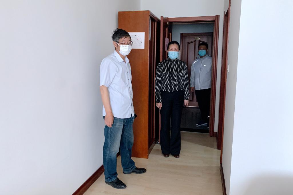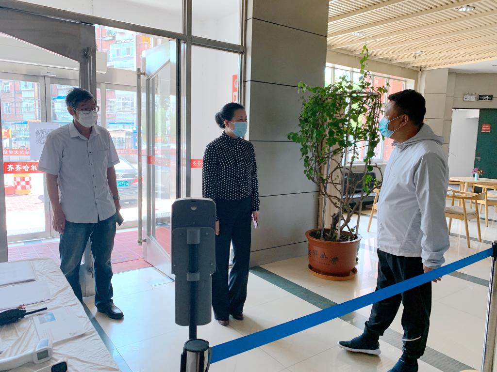在返校学生入住前,陈桂芝一行还深入到隔离观察区和学生宿舍,实地查看了师生返校办事流程、防疫物资储备、应急处置设施、用餐住宿防控等情况,并与教师、职工、校医、宿舍管理人员等进行了交流。