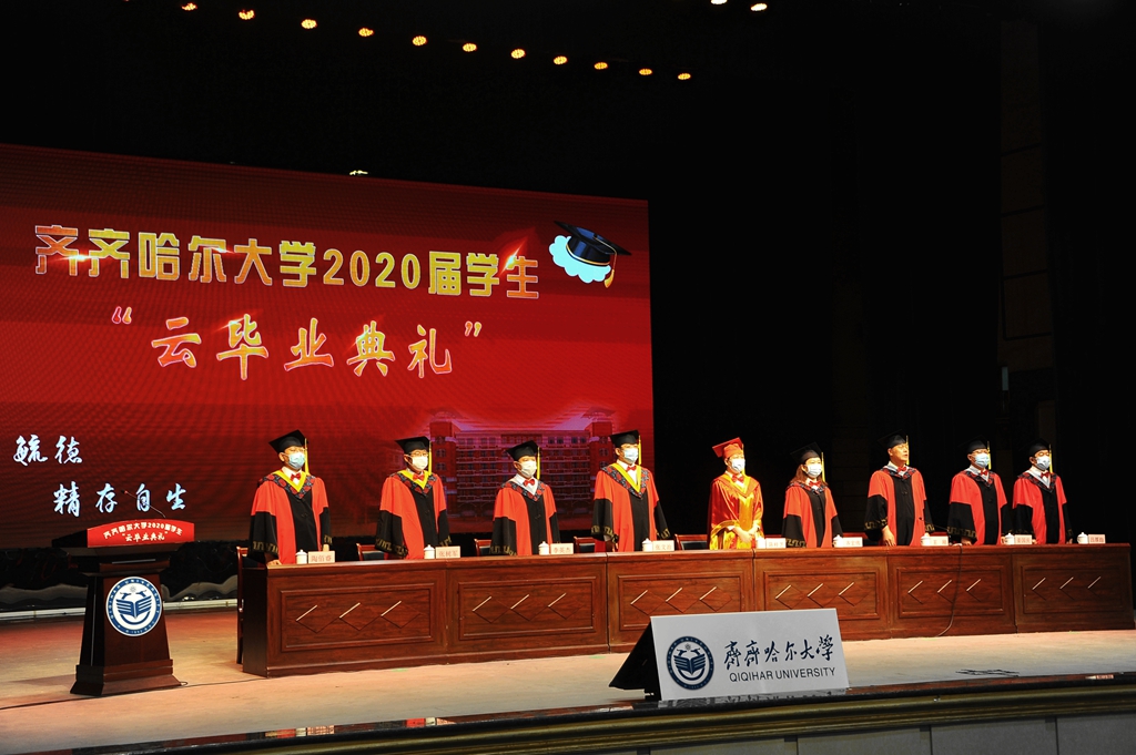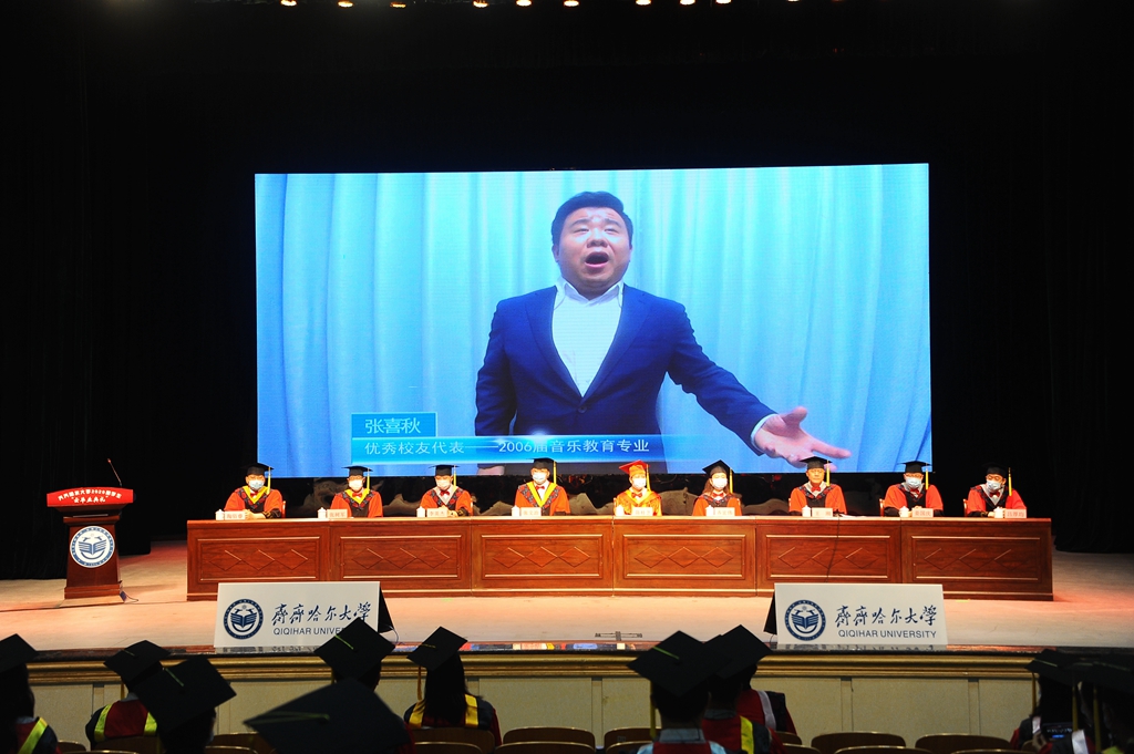 校领导陈桂芝、齐宏伟、张文治、王刚、李英杰、姜国庆、张树军、吕厚均、陶佰睿出席典礼。校学位委员会成员在现场参加典礼,优秀校友代表苑志慧、张喜秋以及即将奔赴祖国各地的2020届全体毕业生和学生家长、社会各界友人以网络在线方式参加典礼。