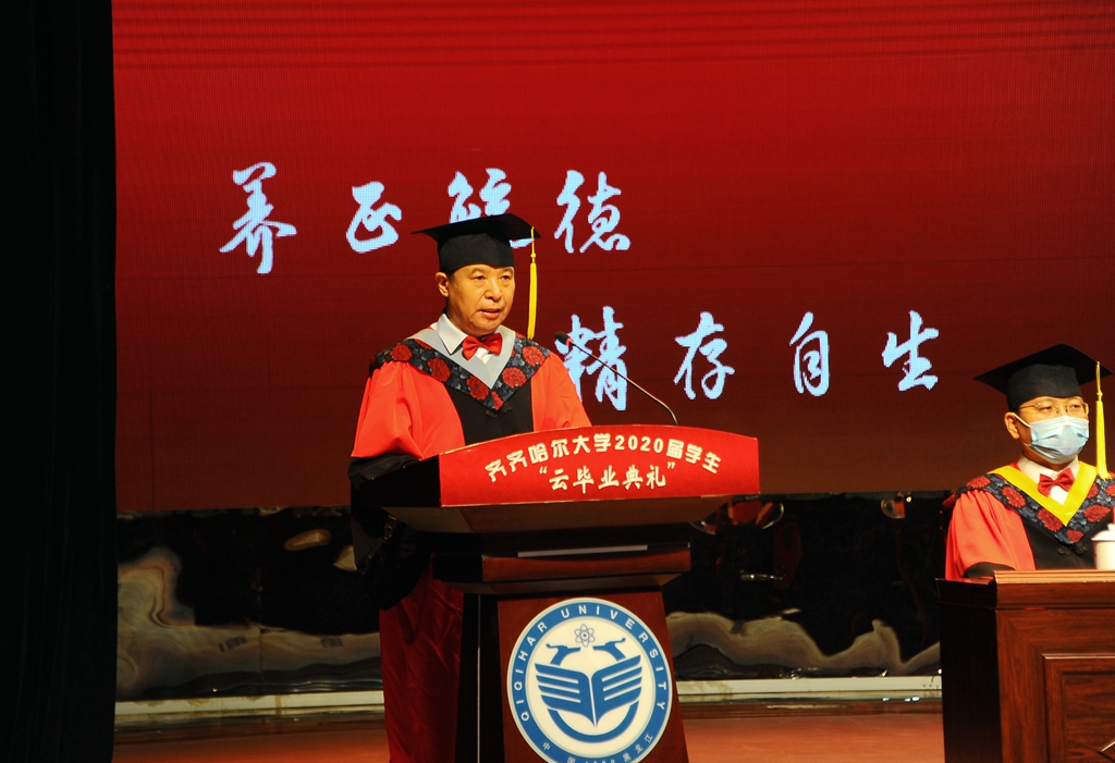 陈桂芝指出,无论是人生还是历史,总是在跌宕起伏甚至曲折中前进。疫情终将过去,毕业就在眼前,你们即将面对新的挑战、开启新的征程。当今世界正经历百年未有之大变局,人类文明发展面临的新机遇新挑战层出不穷,面对不断变化的形势,我们齐大的毕业生们应该持有一种坚如磐石的理想,应该怀有一份民胞物与的情怀,应该拥有一身逆向而行的勇气,去迎接未来更多的变化与未知。