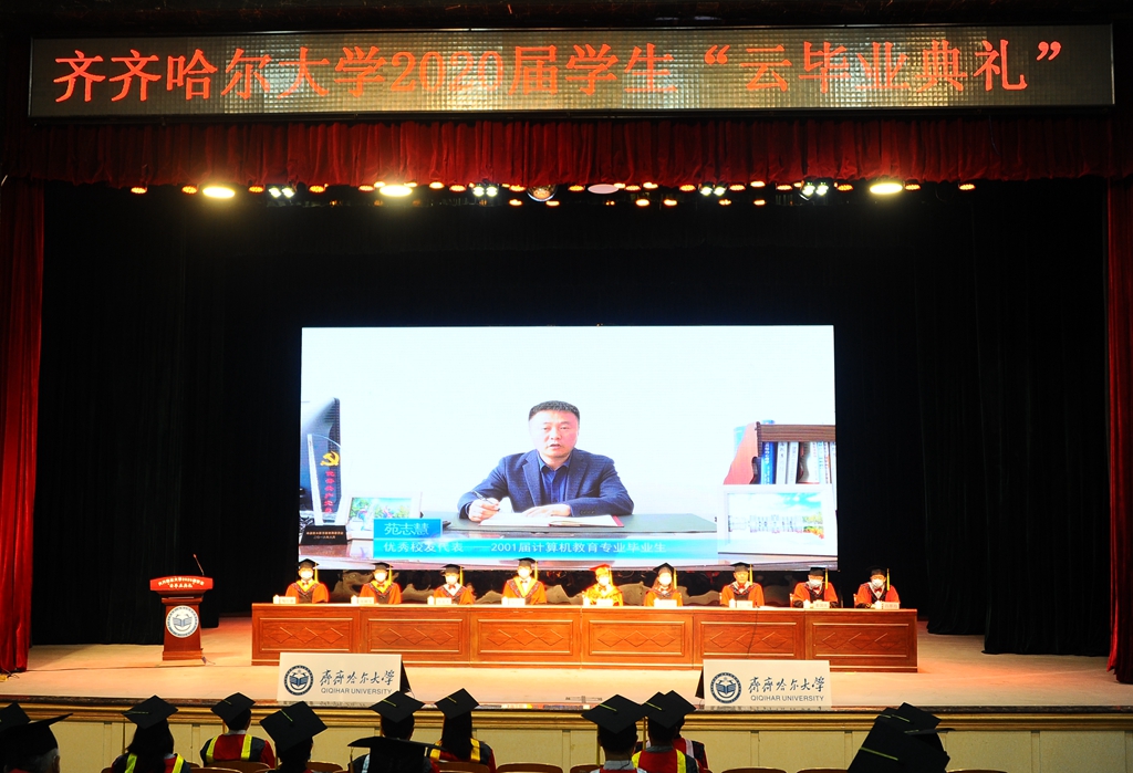 优秀校友代表、2001届计算机教育专业毕业生、“2019年全国优秀教师”、“2019年黑龙江省“十百千”名师培养工程龙江卓越教师”等荣誉获得者、黑龙江省佳木斯第一中学教师苑志慧为即将毕业的学弟学妹们送上临别祝福和毕业赠言。
