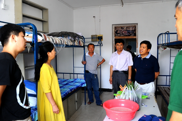 在学生公寓接待点,郑喜群看望了领取被品等基本生活物资的部分新生,并深入到新生宿舍,跟新入住的学生及家长进行了交流。