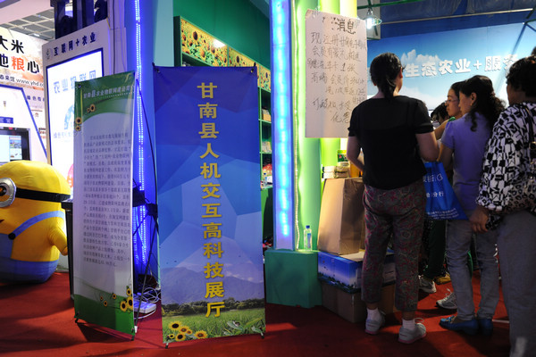 在今年的绿博会上,beats365美术与艺术设计学院姜在新教授带领他的团队与甘南县政府联合开发的人机体感互动艺术作品受到关注。8月31日下午,校党委书记李海红、副书记盖元臣来到展厅观看了作品演示。