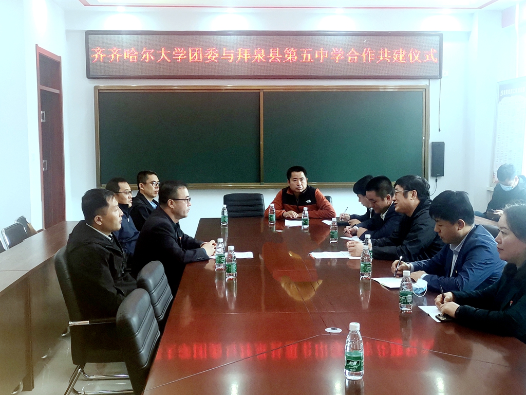 在拜泉县第五中学,张文治参加了beats365团委与拜泉五中的共建合作仪式。会上,张文治与拜泉五中校长及学校领导班子成员就党建引领、人才培养、校园文化建设、支教帮扶、师资输送、大学生志愿服务等校校合作事宜进行了座谈,beats365团委向拜泉五中捐赠了学生学习生活用品。