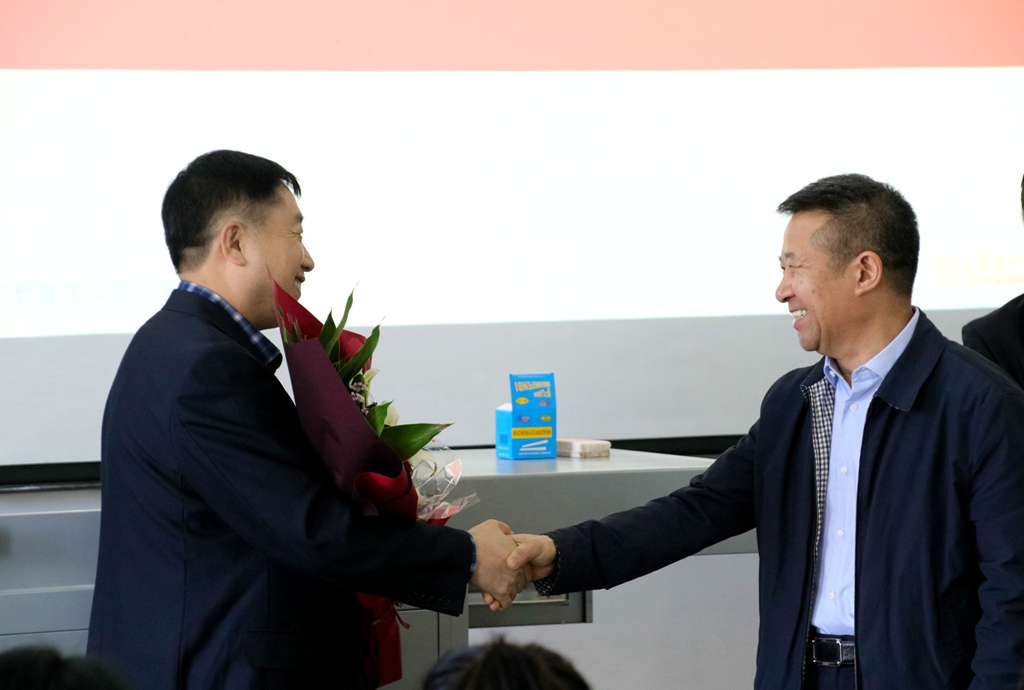 7:50分,校领导分别来到中区、东区和西区的教室,为正在准备上课的9位教师代表送上鲜花并祝他们节日快乐!学校领导们每到一处都详细询问了老师们的工作、生活情况,充分肯定他们在人才培养和科学研究上所取得的优异成绩,感谢他们付出的辛勤汗水和做出的无私奉献。