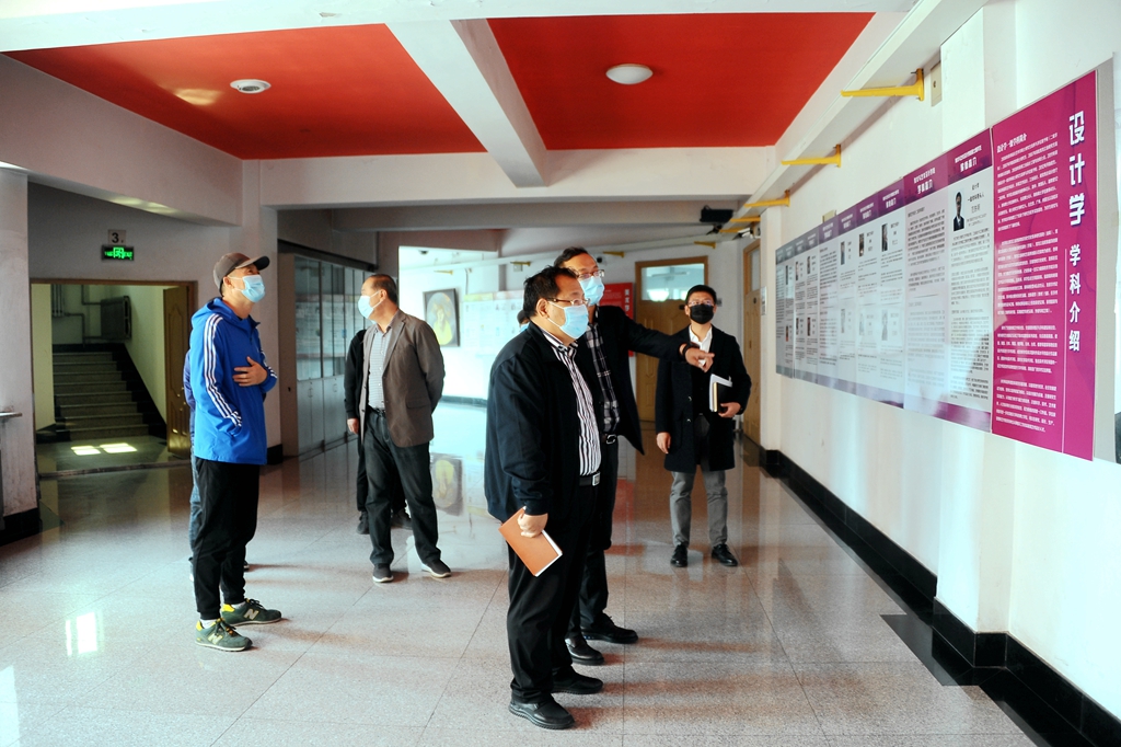 汇报会召开前,董玉庭一行实地查看了学校美术馆和美术与艺术设计学院各系部办公场所。