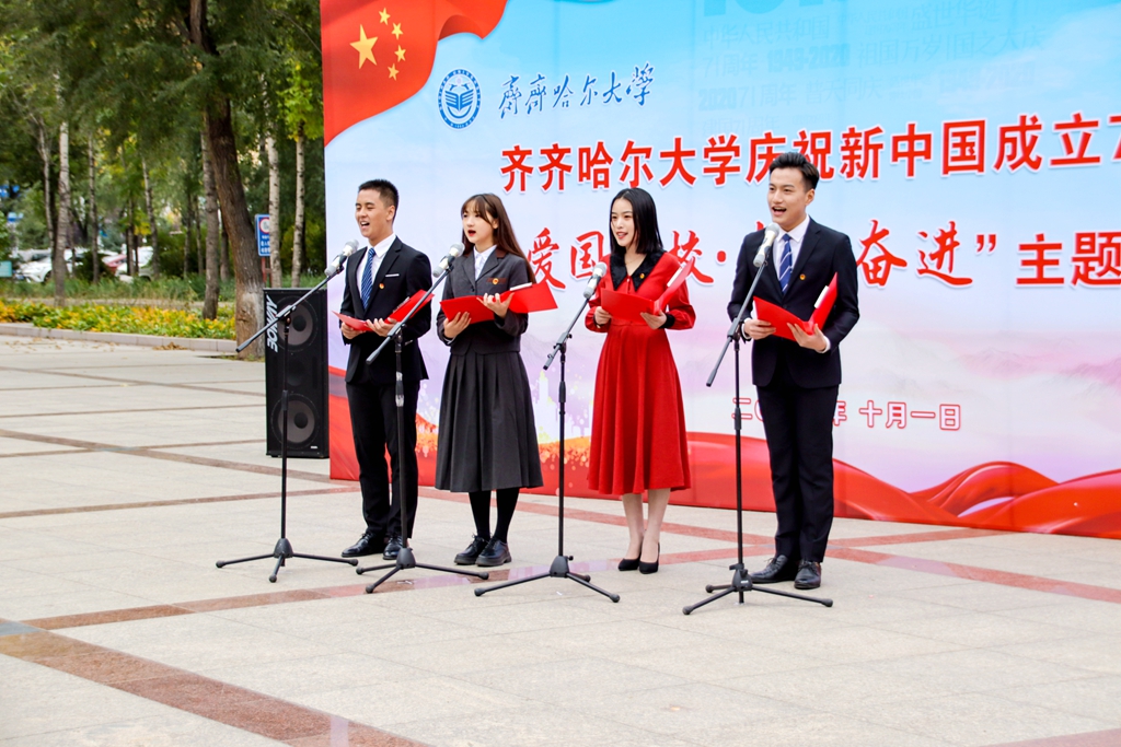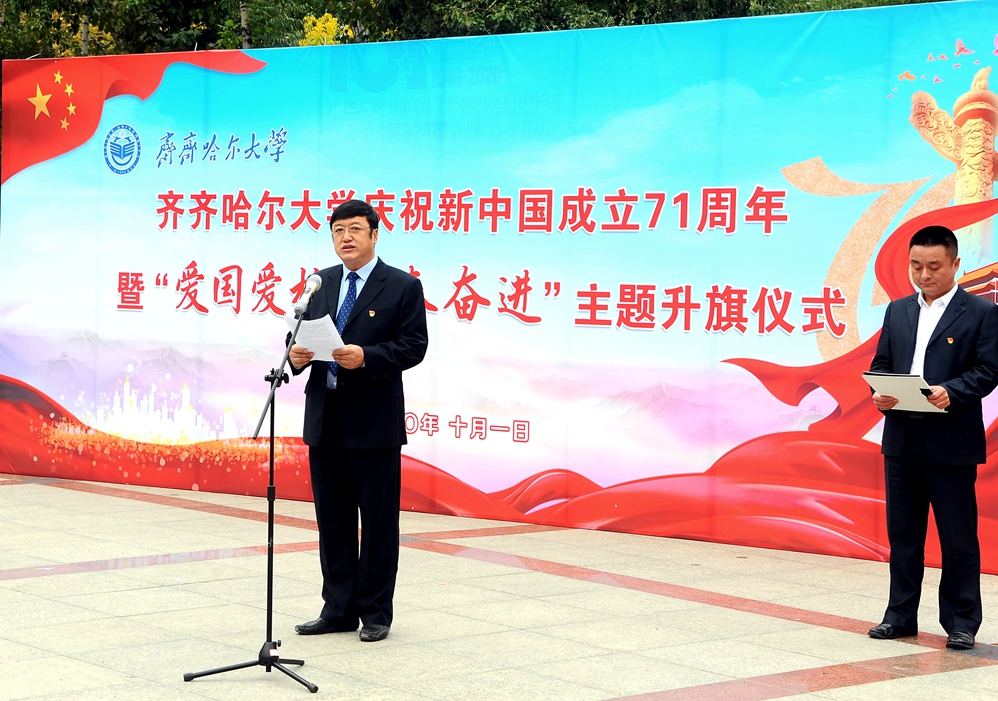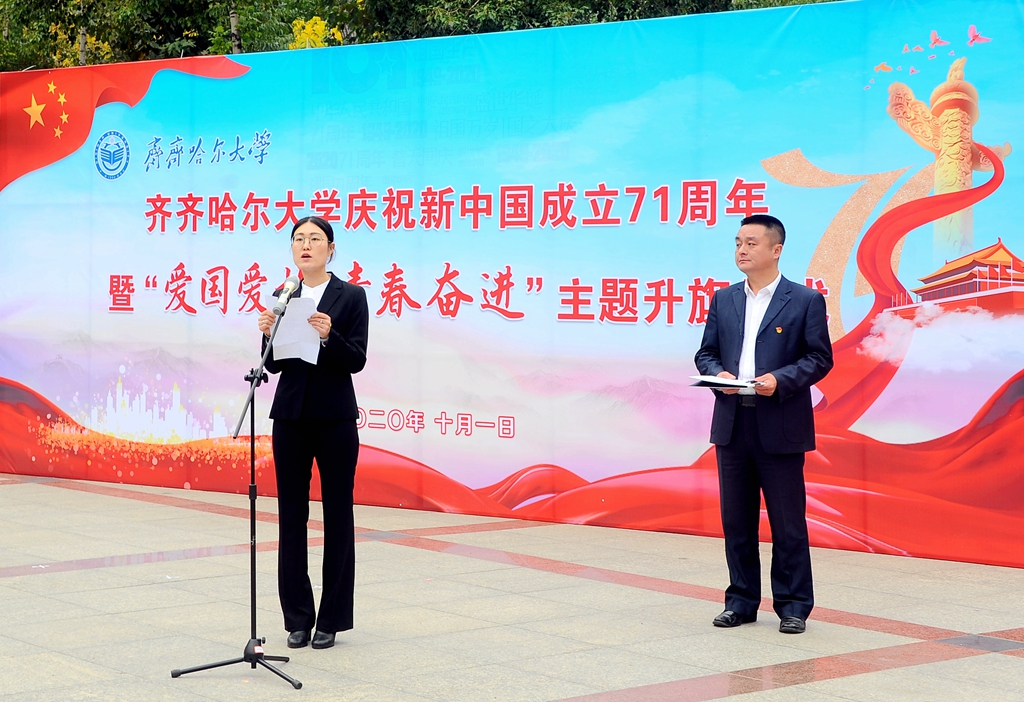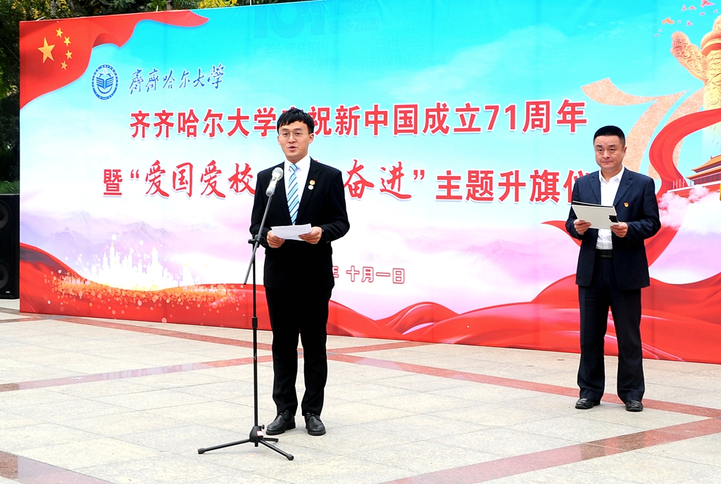 校学生会主席、建筑与土木工程学院规划161班李鹏喆代表全体青年学生发言。他表示,作为新时代中国青年、新时代齐大青年,一定会弘扬以爱国主义为核心的民族精神和伟大抗疫精神,不忘跟党初心、牢记初心使命、奋发务实进取、勇于自我革命,让青春在党和人民最需要的地方绽放绚丽之花。