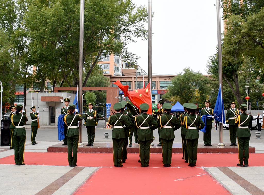 上午8时,升旗仪式正式开始。学校国旗护卫队以整齐划一的步伐,昂首阔步护卫国旗走向升旗台。伴随着雄壮的《义勇军进行曲》,鲜艳的五星红旗迎风飘扬、熠熠生辉。升国旗、唱国歌,升校旗、唱校歌。参加活动的全体师生以齐大人的名义、以最高礼仪向伟大祖国致敬,共庆新中国71华诞!