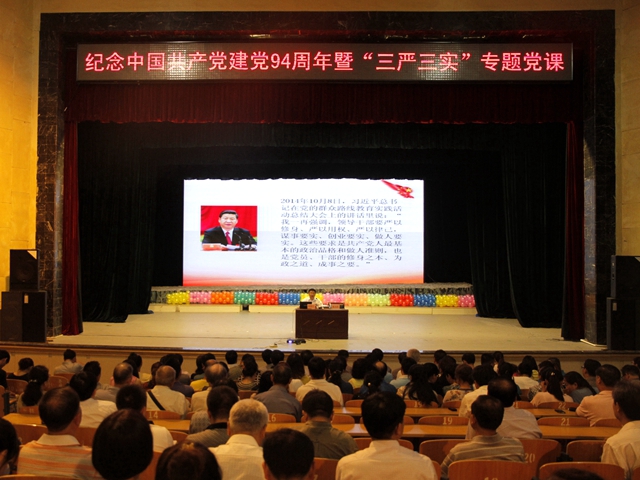 伟大的旗帜,光荣的梦想。在党的生日来临之际,7月1日15:00,beats365唯一官方网站纪念中国共产党建党94周年暨“三严三实”专题教育党课在文化宫举行。