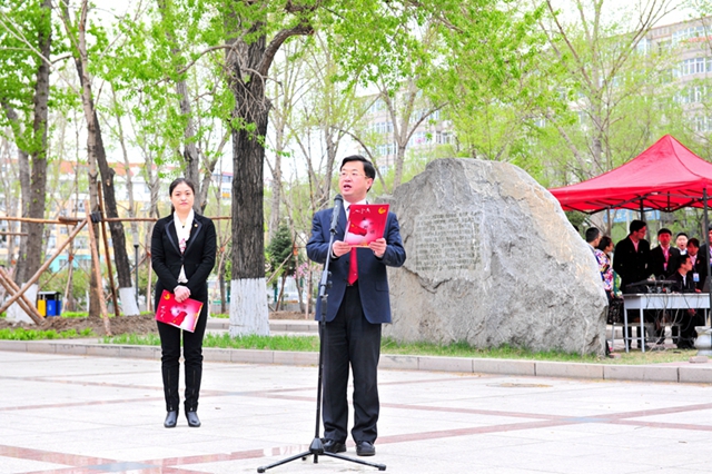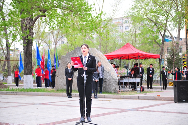 校学生会主席李成同学代表全校两万余名团员青年在升旗仪式上发言,号召广大团员青年要心怀祖国、勤奋学习、勇于拼搏、臻于完善并以实际行动唱响人生最壮美的青春之歌。发言结束后,在李成同学的带领下,在场的齐大学子群诵《少年中国说》,“我少年中国,与天不老;我中国少年,与国无疆”的铿锵誓言响彻广场,同学们对着国旗许下庄严承诺。