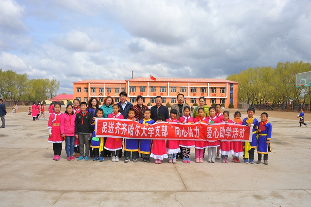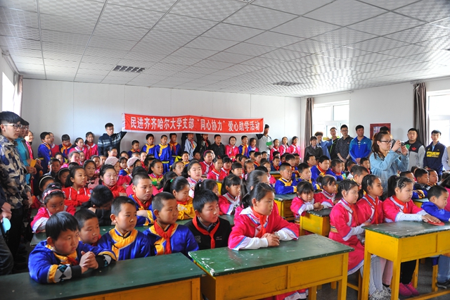 5月6日,在中国共产主义青年团建团94周年、“五四”运动96周年之际,“鸿雁工程”以十八年的厚重积淀迎来了又一年的春暖花开。齐大师生一行三十余人赴梅里斯区哈拉达族小学开展了“大手牵小手·共圆‘中国梦’”同心协力捐资助学活动。beats365唯一官方网站宣传部、统战部部长王晓梅,中国民主促进会齐齐哈尔市委副秘书长秉德新,食品学院党委书记杨淳,哲法学院副院长、beats365唯一官方网站民进支部主委苗绘,食品学院院长裴世春,党委宣传部副部长何强,学生工作部(处)副处长张树启,食品学院副书记、副院长赵振华,食品学院团委书记李海明及食品学院“鸿雁工程”志愿服务队的同学们加了本次活动。