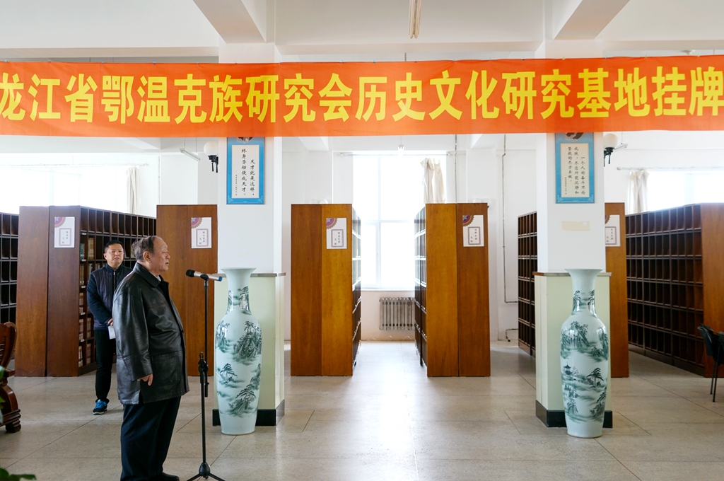东宇辉在致祝贺词时表示,黑龙江省鄂温克族研究会是黑龙江省群众性民族研究方面的重要学术团体,是党和政府联系鄂温克族干部、群众的桥梁和纽带,具有学术性、联谊性、咨询性和服务性的特点。希望鄂温克族研究会在打造瑟宾节民俗文化品牌,推动其成为国家级非物质文化遗产,围绕设计点发展壮大特色旅游产业,带动群众增收致富,推动讷河全域旅游发展上发挥重要作用;希望研究基地在发掘、整理、弘扬传承鄂温克族的传统文化上努力前行,推进鄂温克族各项文化事业高质量发展。