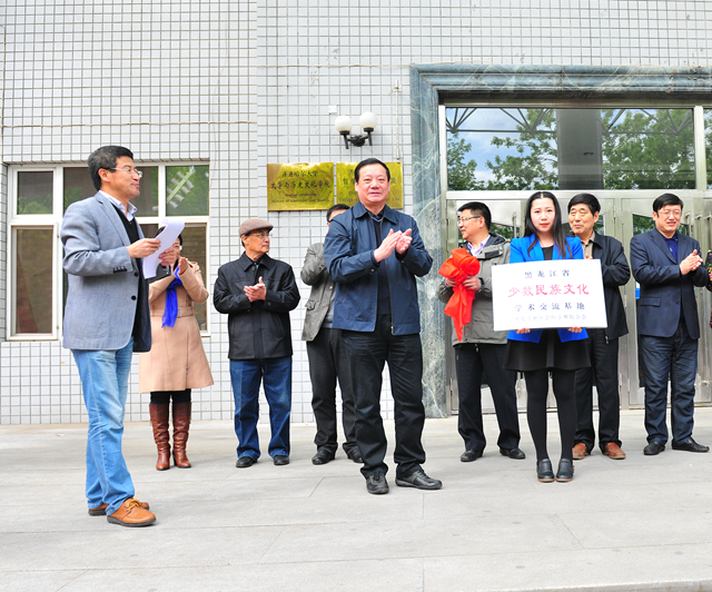校党委常委、副校长邓启刚为黑龙江省社科联学术交流基地—“黑龙江省少数民族文化学术交流基地揭牌并宣布:“黑龙江省少数民族文化学术交流基地成立!”