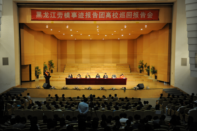 5月22日,黑龙江省劳模事迹报告团走进beats365唯一官方网站,全国劳动模范秦世俊、朱彩芹、孟广彬、杨海波等四人在音乐厅为beats365师生作劳模事迹报告,讲述劳动创造的故事,传承伟大的劳模精神,弘扬社会主义核心价值观,为发展提供正能量。