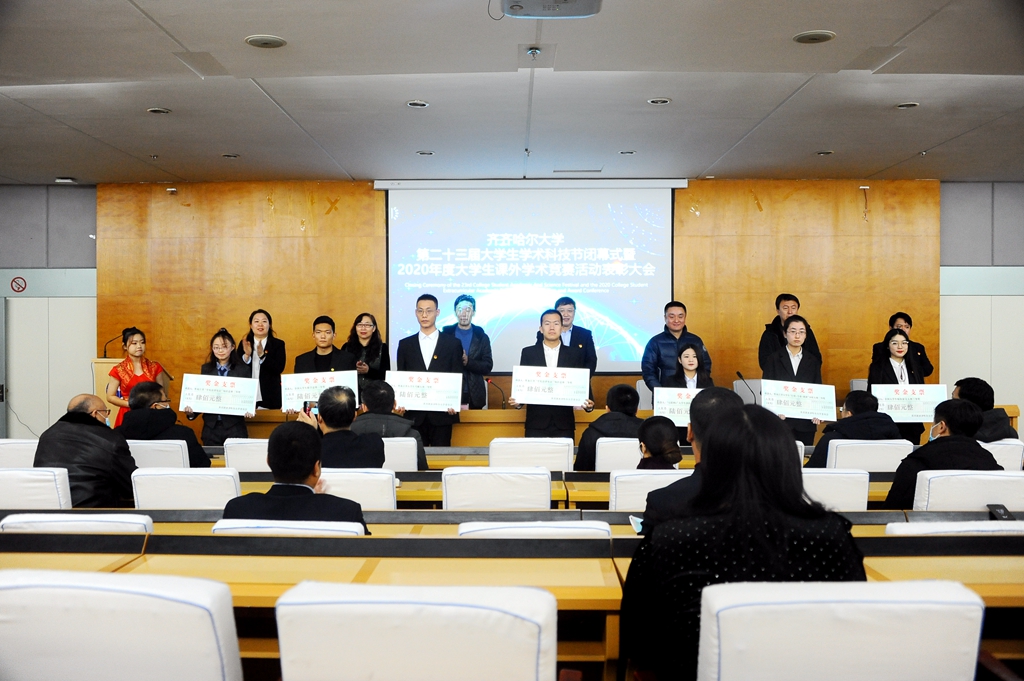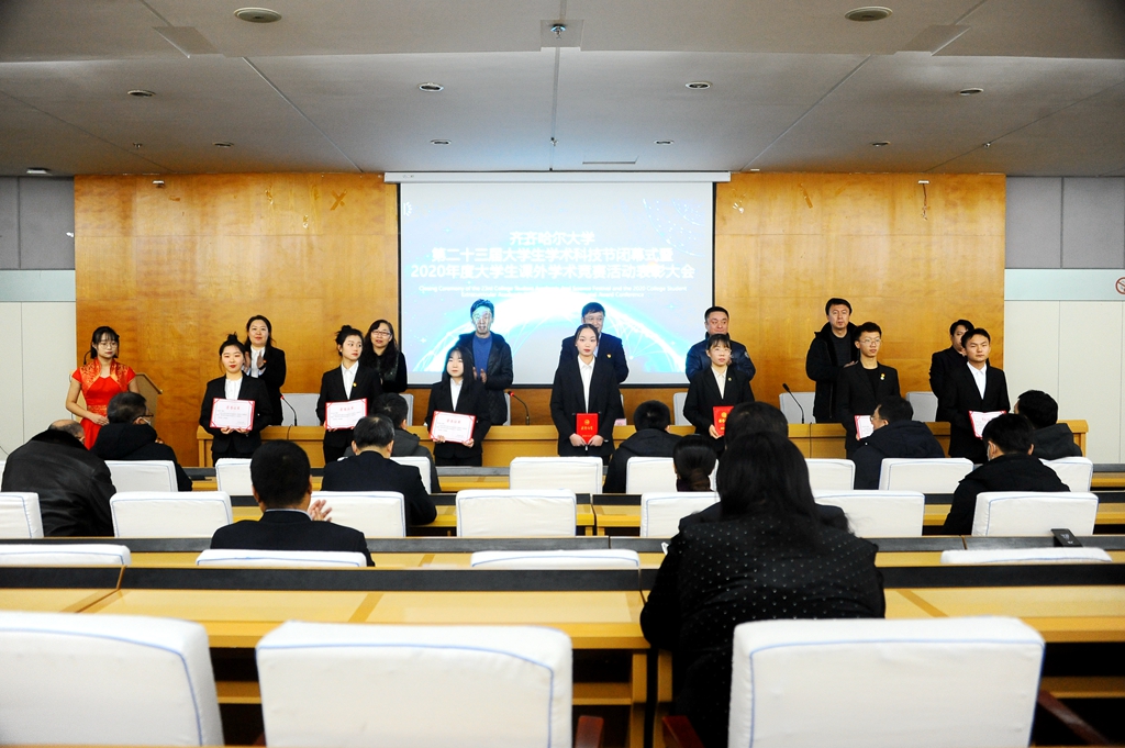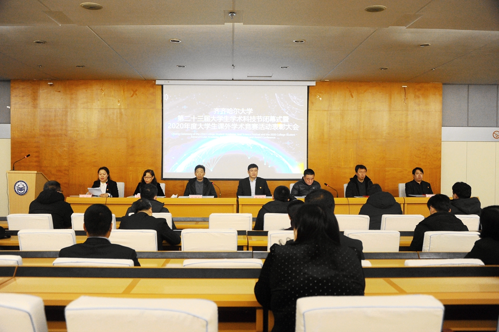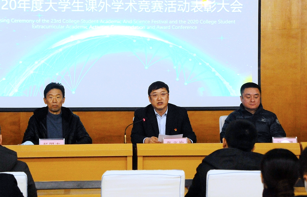 科技自立自强,青春承载梦想。12月11日下午,学校第二十三届大学生学术科技节闭幕式暨2020年度大学生课外学术竞赛活动表彰大会在西区主楼七楼学术报告厅举行。本届科技节组委会主任、校党委副书记张文治出席大会,学生工作部(学生处)、招生就业处、科研处、教务处、团委等部门负责人,各学院主管学生工作的党委书记、副书记,各学院团委书记,创新创业活动指导教师代表,本届科技节组委会成员和各学院80余名学生代表参加了闭幕式。闭幕式由校团委副书记计红主持。