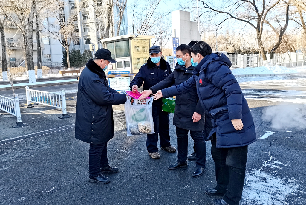 校领导分别来到中区大门、学校110中心、办公楼门卫室、总值班室、保卫处值班办公室;学生寝室、西区第一教学楼门卫室、体育馆;中区变电所、锅炉房;东区大门、西区大门、西二区大门、林校区大门、西二区生命科学楼门卫室等处,代表学校向一线值班值守工作人员为保障学校寒假期间各项工作平稳运行所付出的辛勤劳动表示感谢,为他们送去了慰问品,并给他们提前拜年,祝大家万事如意,幸福安康。