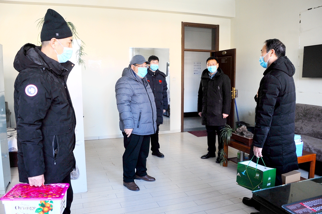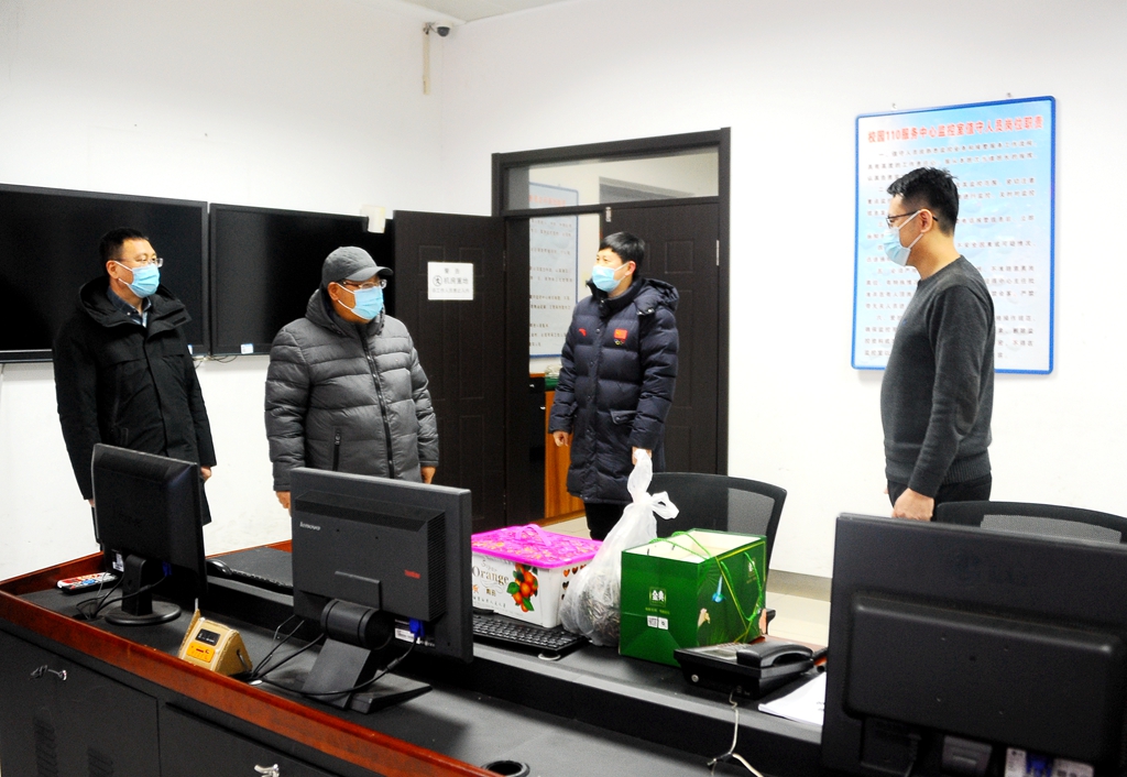 2月10日上午,在农历新年即将到来之际,校长董玉庭、校党委副书记张文治、副校长王刚、校工会主席陶佰睿在相关部门负责人陪同下深入到假期值班单位慰问在岗一线职工,并向全校师生员工致以新年问候。