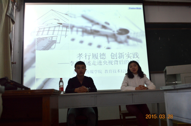 3月28日,李鑫同学在教育与传媒学院教学楼317与同学们分享了他的这段特殊的拍摄经历,从拍摄缘由、拍摄经历、拍摄时注意事项、央视选择他的原因以及登上央视银屏后他和家人的感受和同学们做了分享。