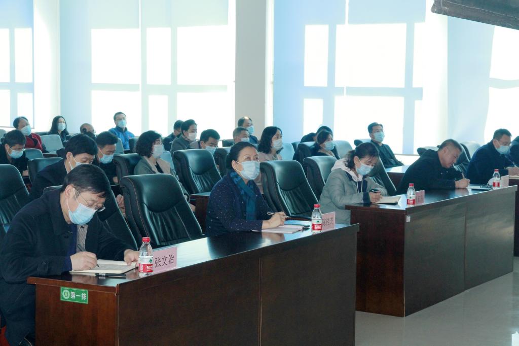 学校在求实楼五楼会议室设立分会场,校党委领导班子成员、全校副处级以上领导干部参加视频会议。