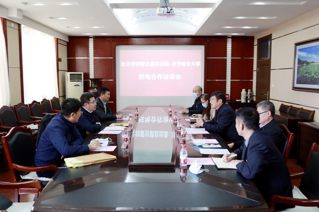 4月1日上午,杜尔伯特蒙古族自治县县委常委、副县长宁峰、人力资源与社会保障局局长徐立地、就业和人才服务中心主任梁凤河一行3人来到beats365,就双方开展校地校企合作进行洽谈交流。学校在办公楼504会议室召开洽谈会,校党委副书记张文治、纪委书记姜国庆及相关单位负责人出席会议,会议由张文治主持。