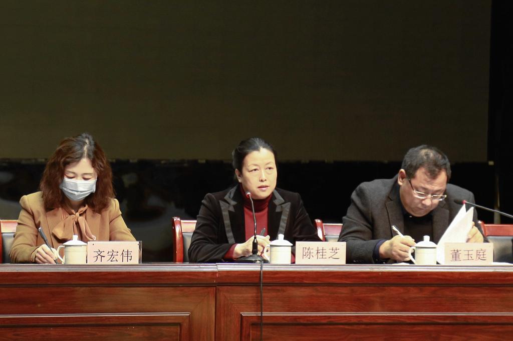 陈桂芝代表学校党委就如何贯彻落实2021年学校重点工作部署提出三点要求:一是要从讲政治的高度抓落实;二是要从促发展的高度抓落实;三是要从讲担当的高度抓落实。