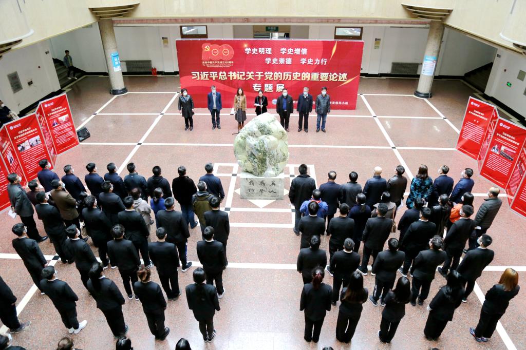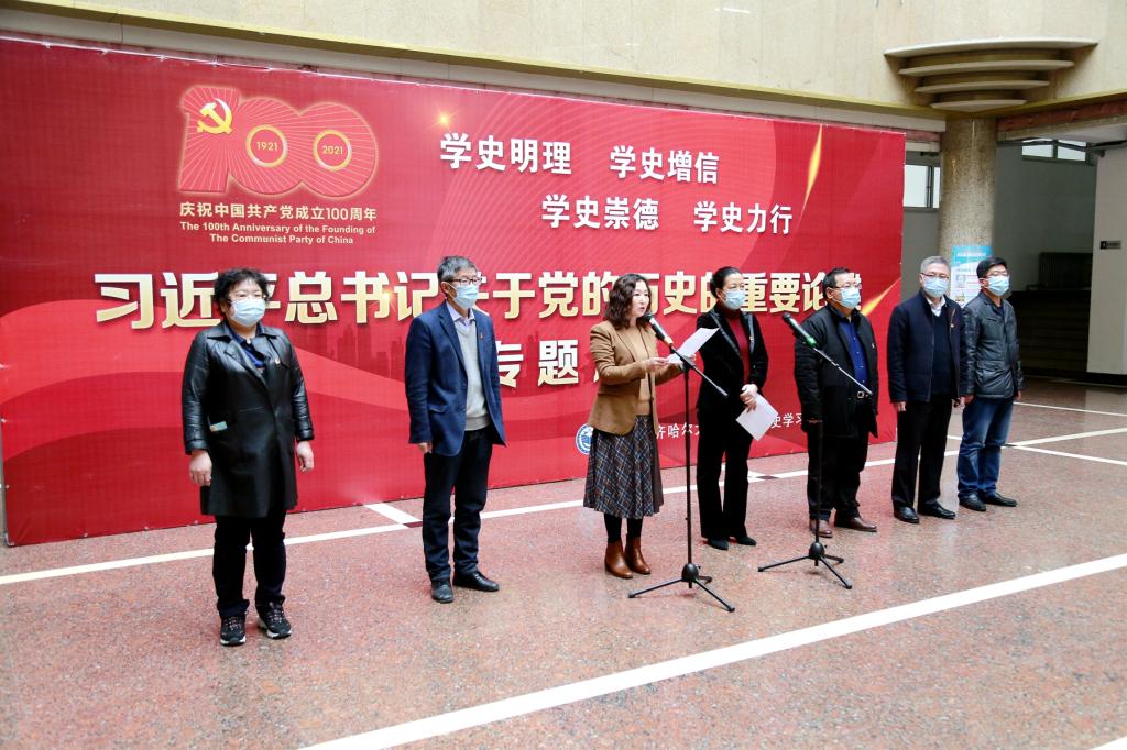 为推动beats365党史学习教育深入开展,营造浓厚氛围,全面深入系统学习习近平总书记关于党的历史重要论述,4月15日下午,中共beats365唯一官方网站委员会党史学习教育领导小组主办的“习近平总书记关于党的历史重要论述专题展”启动仪式在西区主楼阳光大厅举行。