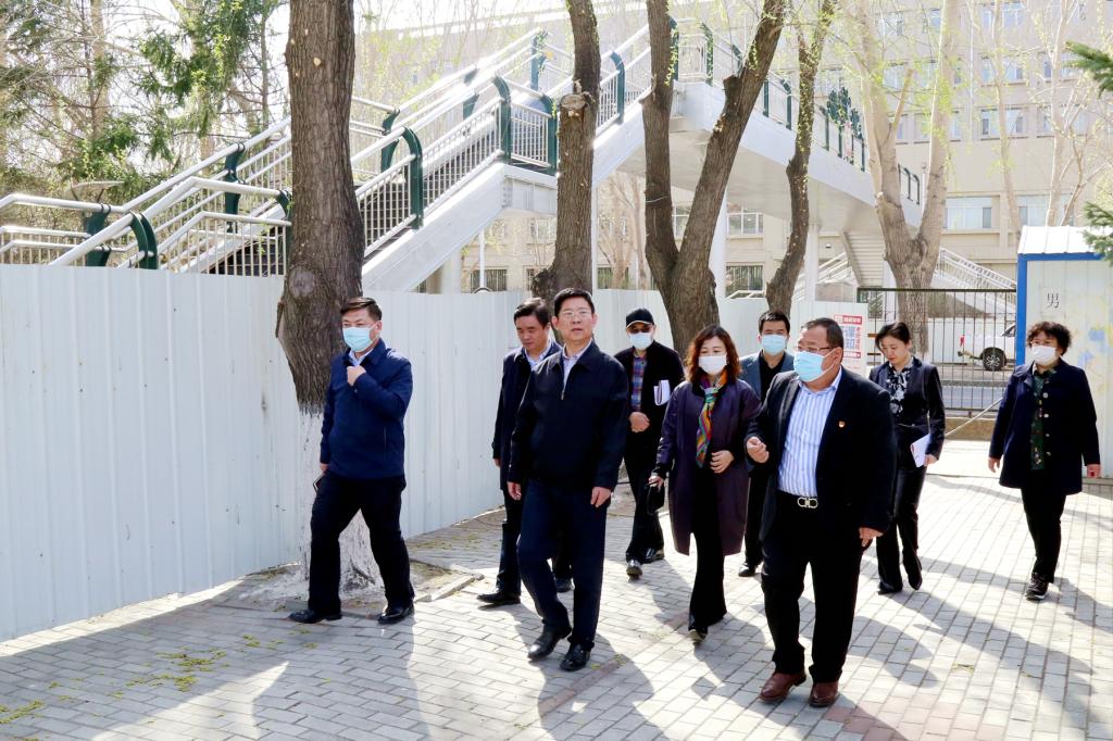 会后,姜同河查阅了学校党史学习教育档案材料,并在学校领导陪同下,实地查看了“我为师生办实事”的新成果新建的西二区人行过街天桥。