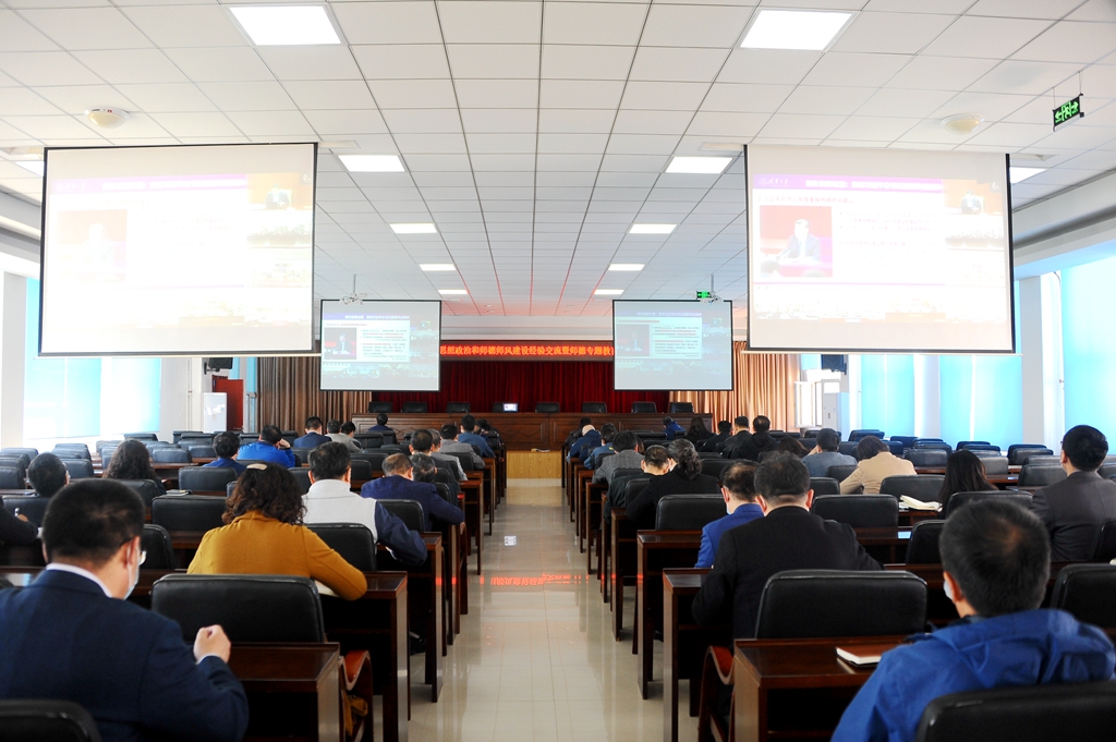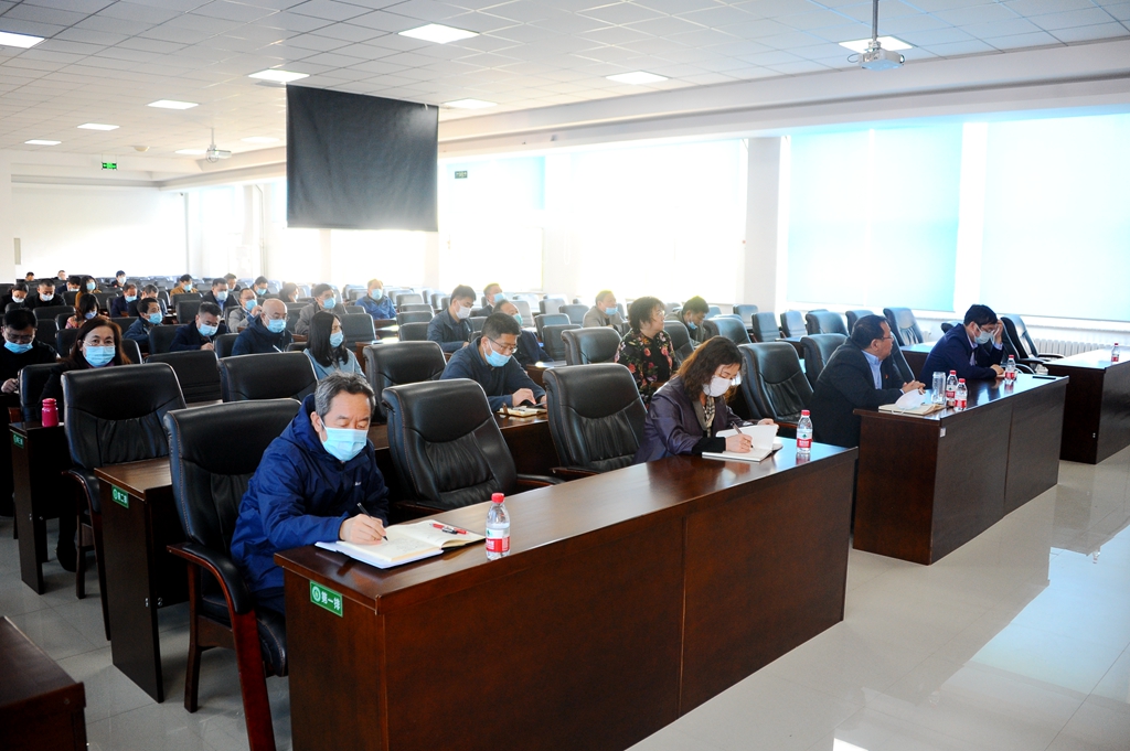 beats365校长董玉庭、校党委副书记齐宏伟、校党委副书记张文治、副校长吕厚均和相关职能部门负责人、各二级教学单位党政主要负责人在求实楼5楼会议室通过视频会议的方式参会。