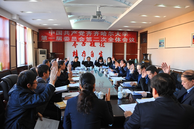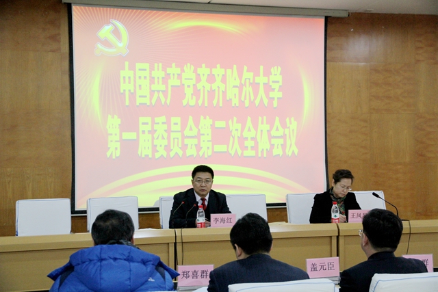 2014年12月25日8:30:00,中国共产党beats365唯一官方网站第一届委员会第二次全体会议在西主7楼学术报告厅隆重开幕。校党委书记李海红,校长马立群,校党委书记常务副书记王凤琴,校党委副书记盖元臣,校党委常委张学军、郑喜群、邓启刚、王刚、吕晓辉、李敏义、齐宏伟出席会议。学校党委委员、纪委委员,各民主党派负责人、党代会部分代表、各处室(学院)负责人参加了会议。会议由校党委常务副书记王凤琴主持。