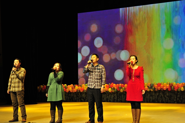 第二届“欢乐齐大”教职工文艺演出在音乐与舞蹈学院开场舞《动感青春》中启幕,各单位精心选送了教职工排演的节目,载歌载舞喜迎新年。歌伴舞《茶山情歌》、表演唱《精彩国交 阳光国交》、女声小合唱《雪绒花》、舞蹈《蒙古风韵》、歌曲联唱《风往北吹》、《终于等到你》、《风吹麦浪》、《美丽的草原我的家》、《兄弟抱一下》,三句半《谁不说咱食堂好》,美式乡村音乐《什锦菜》,歌伴舞《众人划桨开大船》、《人生第一次》,女生小合唱《渔家姑娘在海边》、《歌声与微笑》,男声独唱《等待》,歌伴舞《改变自己》,朗诵、歌舞组合《中国梦》,藏族舞 《吉祥谣》,女声小合唱《喀秋莎》、《红梅花儿开》、《莫斯科郊外的晚上》等节目精彩纷呈,赢得了观众阵阵热烈的掌声。演出最后在音乐与舞蹈学院全体教职工表演唱《感恩的心》中圆满结束。