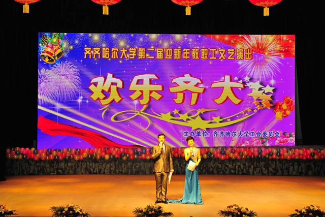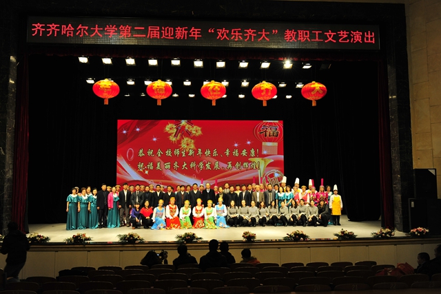 环湖盛景美如妍妍画卷,欢歌笑语传递浓浓深情。为抒发全校教职工“热爱齐大”、“建设齐大”、“奉献齐大”的情怀,展现教职工爱岗敬业、奋发有为、创新进取的良好精神风貌,践行“为人 为学 为师”的教师风范,为建设高水平大学汇聚正能量,2014年12月31日下午,第二届“欢乐齐大”教职工文艺演出在文化宫隆重举行。