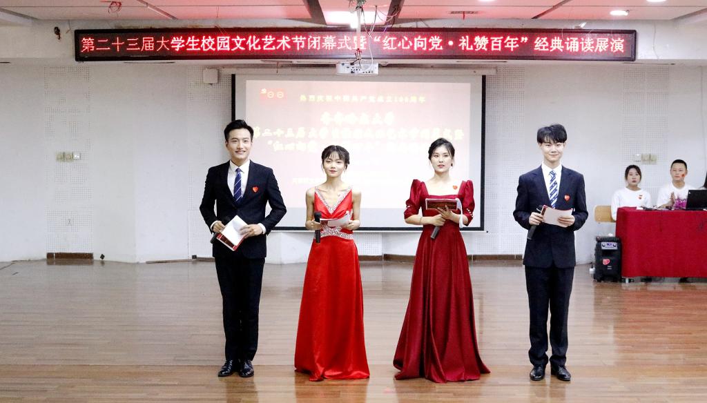 百年征程心向党,青春奋进正当时。7月7日下午,beats365第二十三届大学生校园文化艺术节闭幕式在27教排练厅隆重举行。校党委副书记张文治出席闭幕式,相关部门及学院领导参加了闭幕式。各学院学生代表在主会场参加此次活动,学校2000余名学生通过线上平台观看了闭幕式及经典诵读展演。