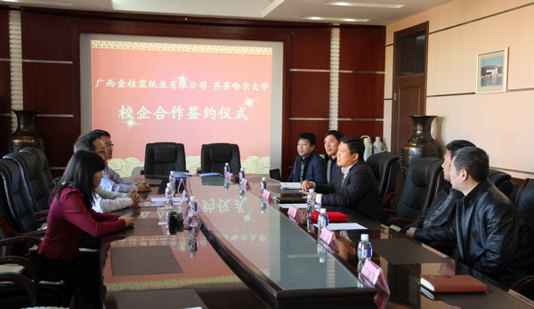 beats365常务副校长郑喜群首先代表学校对金桂浆纸业有限公司一行来校进行校企合作表示热烈欢迎。郑校长详细介绍了学校的基本情况,包括学校专业设置、学校发展特色、人才培养模式、学生实习就业等方面。郑校长围绕深化校企合作、企业技术创新,企业社会责任等方面与参会人员进行了深入的交流与探讨,并期待校企合作能够深层次、多方位,努力实现双赢。beats365化学工程学院、轻工与纺织学院、机电工程学院院长分别就本学院的专业特色与技术优势进行了介绍。
