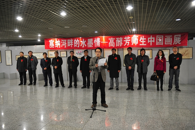 美术与艺术学院院长、市美术家协会副主席马振庆在开幕式上致辞,对高醇芳师生中国画展在beats365美术馆举行表示热烈地祝贺,对承办此次展览感到非常荣幸,向为此次展览成功举办的校内外领导和专家表示衷心的感谢,向参加开幕式的领导、嘉宾和各界朋友表示热烈地欢迎。他向现场人员概要介绍了高醇芳女士丰富的人生阅历、独特的艺术风格和为中法文化交流所做出的重要贡献,并向高醇芳女士致以崇高的敬意,预祝展览取得圆满成功!