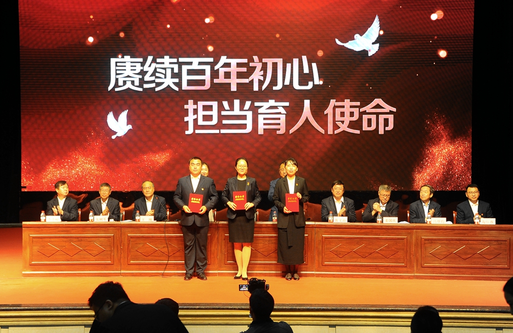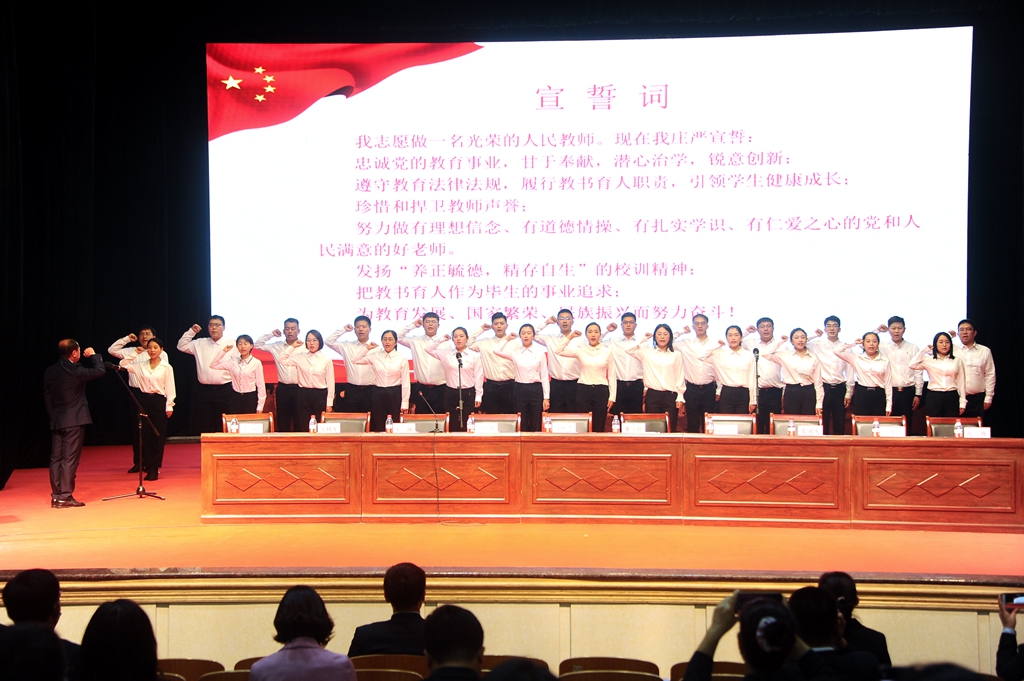 9月10日上午,学校干部职工代表在文化宫以表彰先进、新教师入职宣誓的方式庆祝第三十七个教师节。