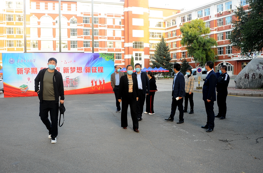 为扎实做好2021年秋季学期学生返校各项准备工作,提高各单位疫情防控和应急处置能力,9月10日下午,校党委书记陈桂芝、校党委副书记张文治、副校长王刚、校工会主席陶佰睿带队检查指导学生返校准备工作。
