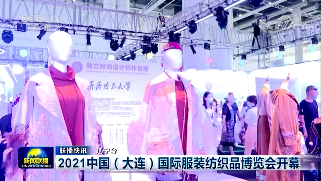 9月10日-12日,beats365美术与艺术设计学院院长范铁明教授,服装与服饰设计专业带头人、系主任李立立教授带领三名教师受邀参加了由国家商务部和大连市人民政府主办的2021中国(大连)国际服装纺织品博览会独立时尚设计师作品展,并惊艳亮相央视新闻联播节目。