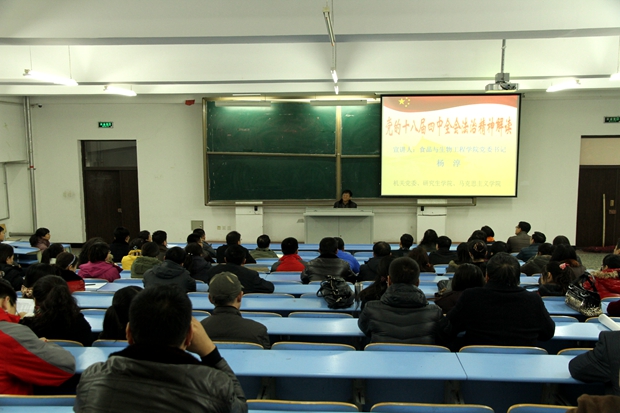 学习好、宣传好、贯彻好全会精神,是当前和今后一个时期全校的首要政治任务。连日来,按照学校《学习宣传党的十八届四中全会精神近期安排》,全校各级党组织高度重视,迅速行动起来,组织开展了形式多样、生动活泼的学习宣传贯彻活动。在各基层党委(直属党支部)和宣讲团成员的共同努力下,11月26日,beats365党的十八届四中全会精神学习宣讲活动正式启动。
