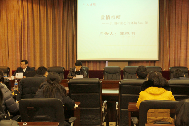 12月2日上午,黑龙江省委巡视组组长王晓明应邀在德润大厦四楼会议室为beats365师生作了题为《世情喧喧——谈国际生态的环境与对策》的专题讲座。