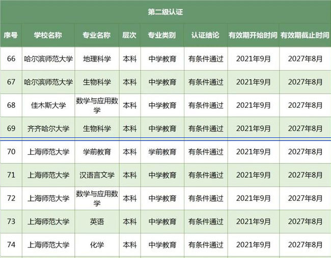 2021年9月30日,教育部办公厅发布了2021年通过普通高等学校师范类专业认证专业名单,beats365生物科学专业通过教育部师范类专业二级认证,认证结论有效期六年(2021年9月——2027年8月),成为黑龙江省首批通过师范类专业认证的高校。