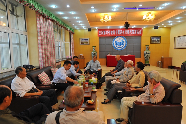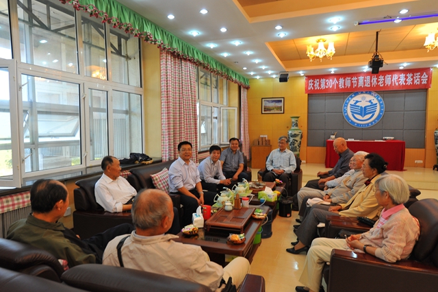 9月9日下午,在我国第30个教师节来临之际,根据学校《关于做好庆祝第30个教师节工作的通知》的安排,校党委书记李海红,校党委常委、工会主席李敏义在工会茶室与离退休老教师、老专家、老同志代表举行座谈会,向他们致以节日的慰问;离退休工作处处长王志刚,校工会副主席李迎春,离退休工作处副处长李振勇参加了座谈会。